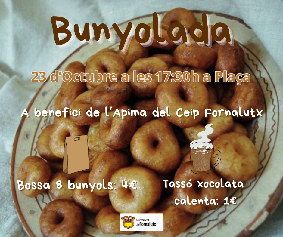 Dijous 23 d'octubre a partir de les 17:30h els pares i mares del CEIP Fornalutx faran bunyols i xocolata calenta per a tots.