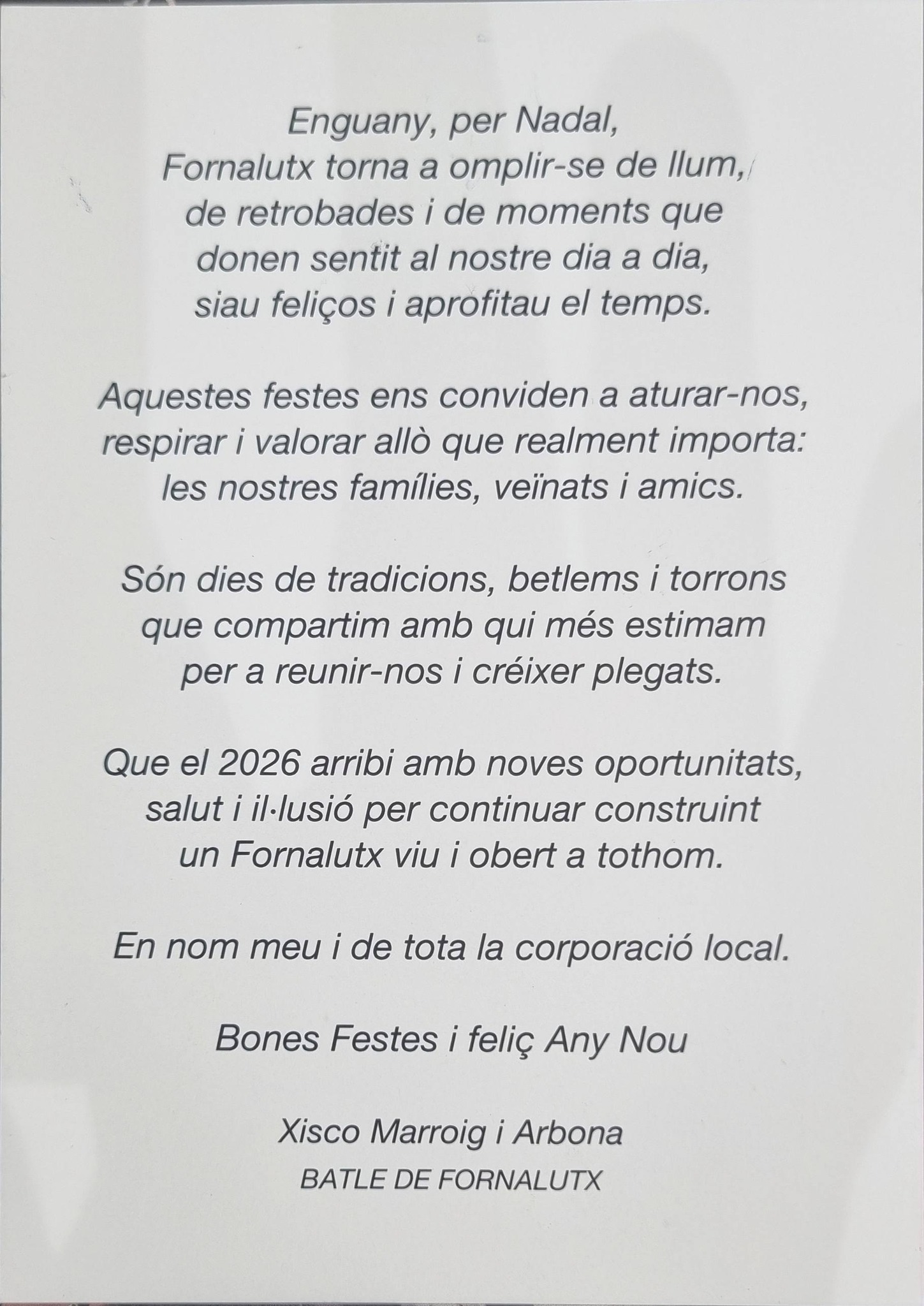 L'Ajuntament de Fornalutx vos desitja unes bones festes de Nadal i un feliç 2026