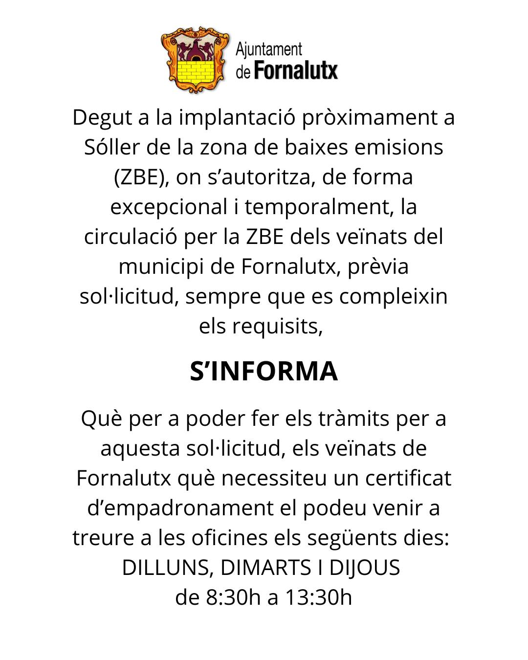 Zona de baixes emisions (ZBE) a Sóller